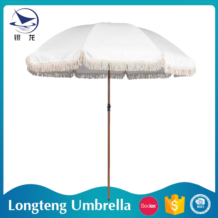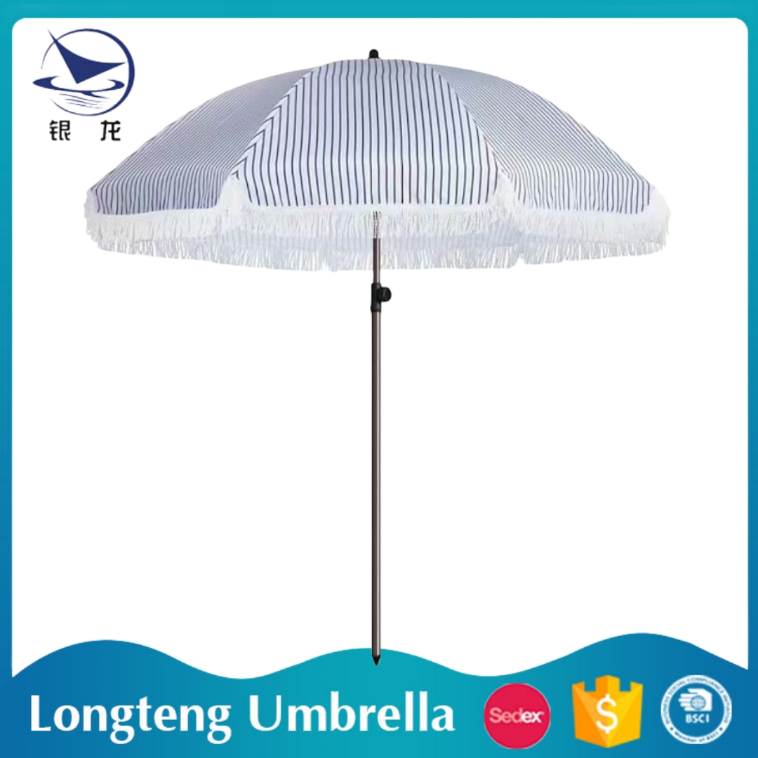 Shaoxing Shangyu Longteng Umbrella Co., Ltd. has been committed to producing and creating outdoor products that are more suitable for family travel, leisure and vacation. The beach umbrellas produced are deeply loved by consumers. This year, we conducted in-depth research to uncover the highlights that young people like, and specifically developed two new styles of products. The Colorful and bright pink splicing, and the Petal shaped hanging edge design, as well as the curved shape, are more able to float the summer breeze and become the most eye-catching scenery outdoors. Everyone who enjoy customization can contact us for exclusive design!